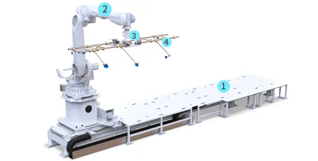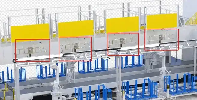 Each group of robots is equipped with a 2D industrial camera installed above the conveyor, with special visual lighting protection area to prevent interference from external light sources;