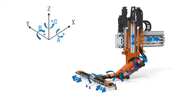 高柔性:5+2轴自由度(Z/B1/B2/B3/C/Y1/Y2)