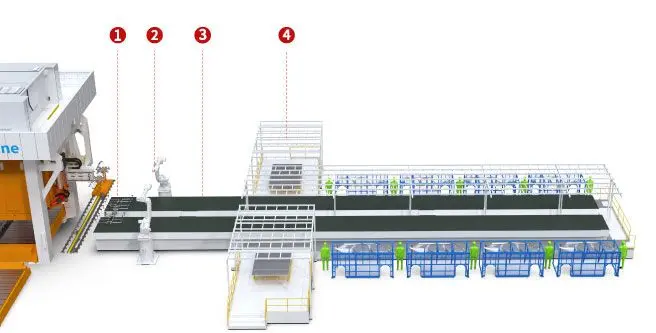 ⑤对中系统:板料进入首台压机前进行对中,确保板料进入压机的位置一致性